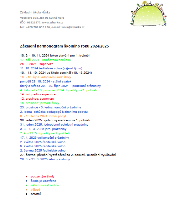 HARMONOGRAM ŠKOLNÍHO ROKU 2024/2025